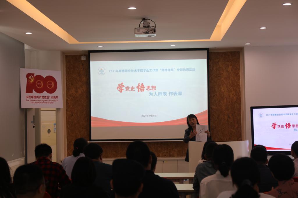 为深入贯彻党的十九大报告关于“加强师德师风建设,培养高素质教师队伍”的总体要求,落实《太阳集团tyc4633师德师风专项整治工作方案》,切实将新时代高校教师职业行为“十项准则”落到学工队伍工作实际,营造风清气正的学生工作教育生态。4月30日上午,学生工作部在易班发展中心举办2021年学党史、悟思想“师德师风”专题教育活动,全体辅导员及学工部全体老师参加了活动,活动由学生工作部副部长揭育通主持。