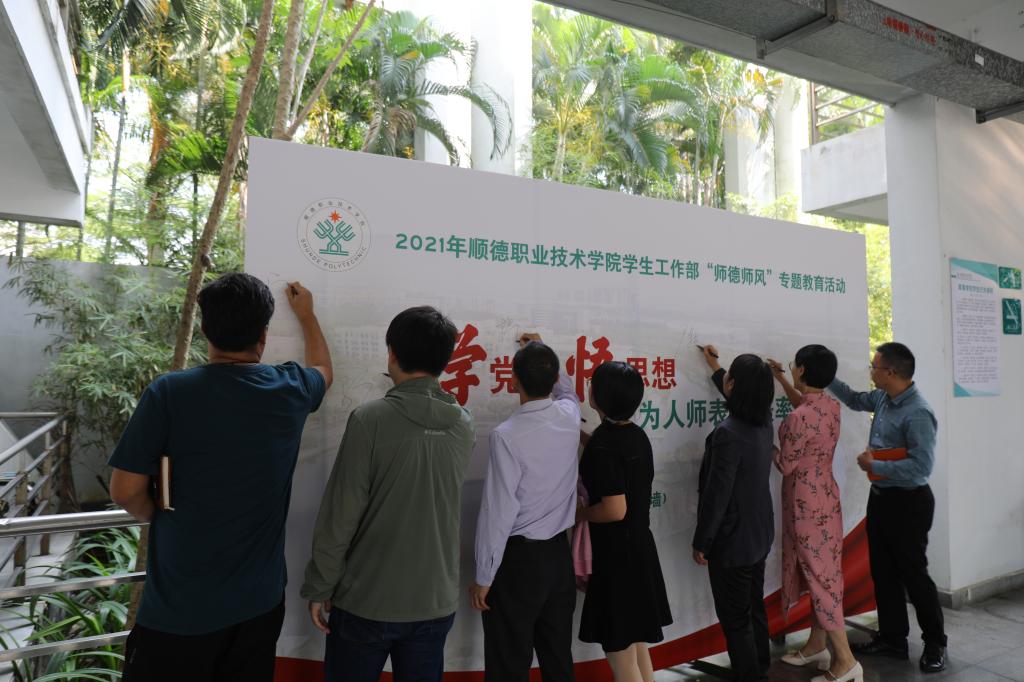 活动最后,全体辅导员集体宣誓并在“为人师表 作表率”的签名墙上签下自己的名字,表达了师者对学生、对学校、对社会的庄重承诺。