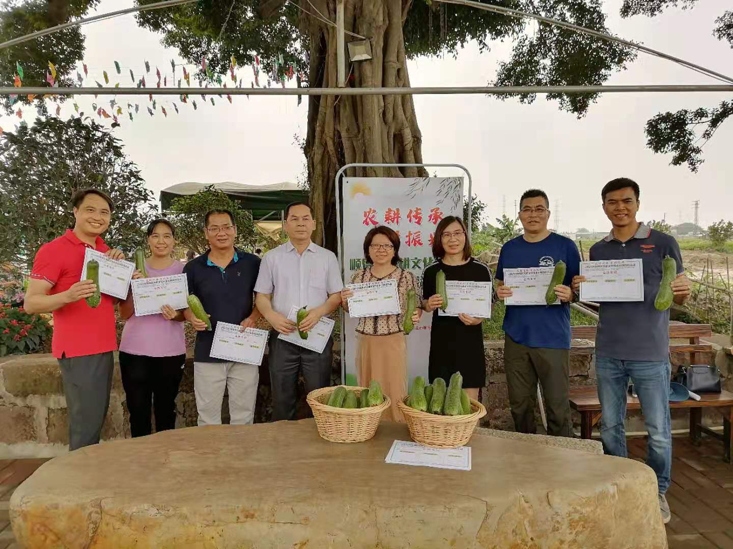 桑麻村党委副书记苏凤娟介绍黑毛节瓜种植基地的乡村振兴发展历程。据苏书记介绍:黑毛节瓜是杏坛桑麻乃至顺德的一张农产品名片,在上世纪80年代左右,桑麻开始种植黑毛节瓜,最鼎盛的时候,日产四五万斤,远销港澳,90年代曾获广东省第一个无公害农产品称号。然而,随着时间的流逝,环境污染、成本上升等问题导致黑毛节瓜的数量日益下降。为了重振黑毛节瓜昔日的繁盛,让这种美味代代相传,桑麻村委引导村民成立黑毛节瓜种植基地,“探索民营资本+村委会+农户”的公司模式,推动黑毛节瓜发展,形成品牌,有力带动村民增收、推动乡村振兴。