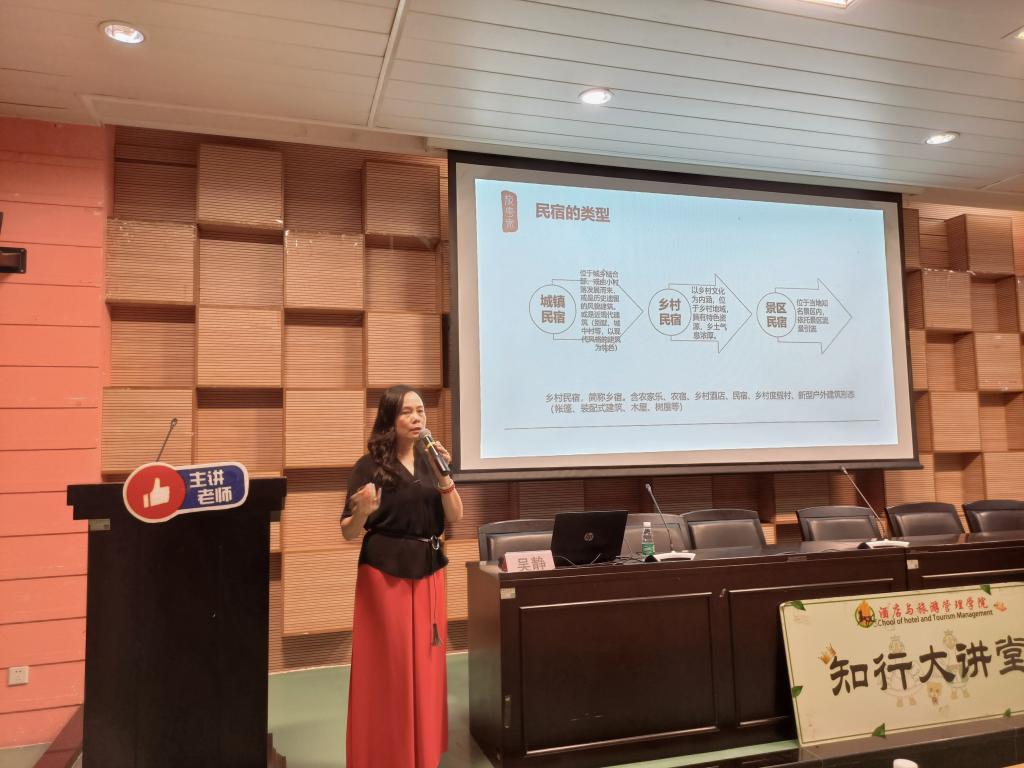 5月12日晚,酒店与旅游管理学院在11栋教学楼5号报告厅举办第41期知行大讲堂活动,邀请旅粤家学院院长吴静讲解“民宿那些事”。