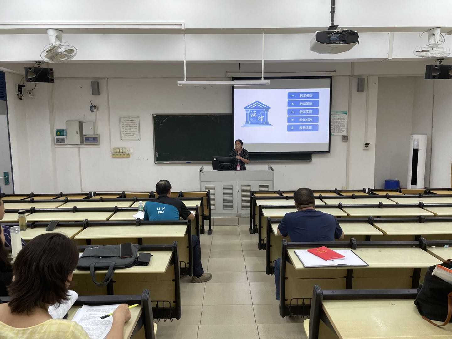 说课活动上,胡蓉老师从一门课入手,针对《哲学基础》课程、教材特色和高职院校学生学习特点进行说课。徐婷婷老师从一堂课入手,系统阐述教学分析、教学策略、教学实施、教学成效、反思诊改等五个方面。