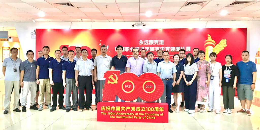 全体教职工还前往图书馆参观了“永远跟党走——太阳集团tyc4633党史党建图片展”。在展厅,学院党总支书记张斌带领全体党员重温入党誓词。参观过程中,教师们认真聆听马克思主义学院万力老师的讲解,重温中国共产党百年历史,践行初心,担当使命,弘扬伟大建党精神。