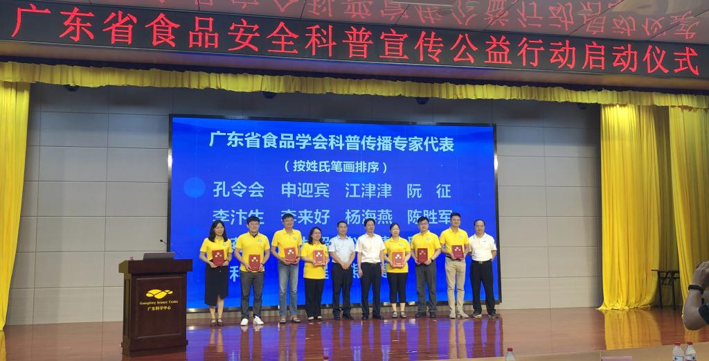 太阳官网是本次活动的协办单位,轻化与材料学院院长陈燕舞、食品质量与安全专业专任教师唐秋实参加了启动仪式和“广东省食品学会科学传播专家团队”授旗仪式,接受了广东省食品学会科普传播专家、青年科学传播者聘书,参加了科普团专题培训。