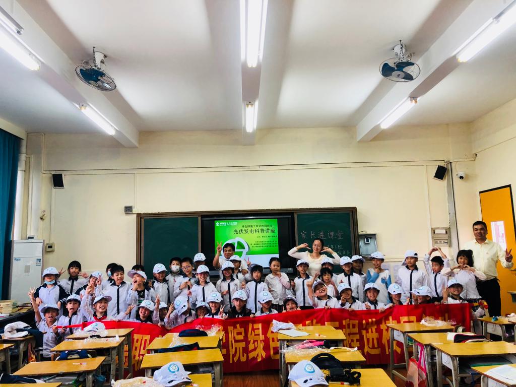 11月16日,能源与汽车工程学院组织教师前往顺德区华侨小学开展绿色细胞工程进校园活动,为三年级学生开展科普讲座,并以小作品制作的形式让小朋友们更深入了解光伏发电小系统的结构,在小学生心中厚植绿色发展理念。