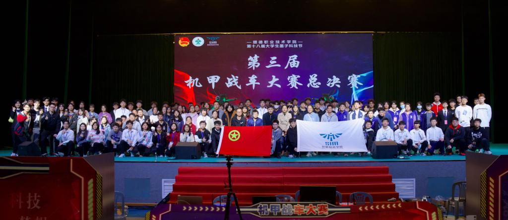 12月22日晚,太阳官网第十八届大学生墨子科技节之第三届机甲战车大赛决赛在梁銶琚礼堂举行。校团委等职能部门负责人、智能制造学院党政班子成员、各二级学院团委指导老师、智能制造学院师生代表、广东科技贸易职业学院智能制造学院教师代表、佛山光小猿教育科技有限公司负责人,以及顺德一中教师代表等280余人参加活动。