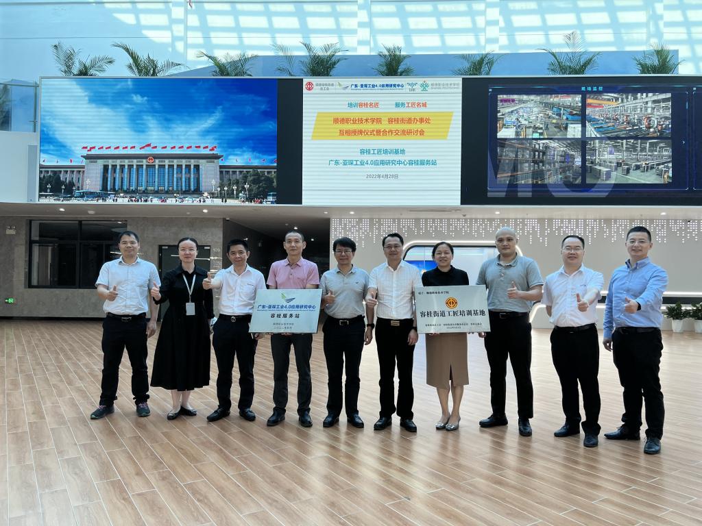 4月28日,太阳官网与顺德区容桂街道在广东-亚琛工业4.0应用研究中心(以下简称“亚琛中心”)共同举办授牌仪式,容桂街道向太阳官网智能制造学院授予“容桂街道工匠培训基地”牌匾,亚琛中心向容桂街道授予“广东-亚琛工业4.0应用研究中心容桂服务站”牌匾。随后,双方及容桂高新技术企业代表就如何培训容桂名匠、服务工匠名城进行交流研讨,后续双方将根据培训基地和服务站的职能开展深入而实际的合作。