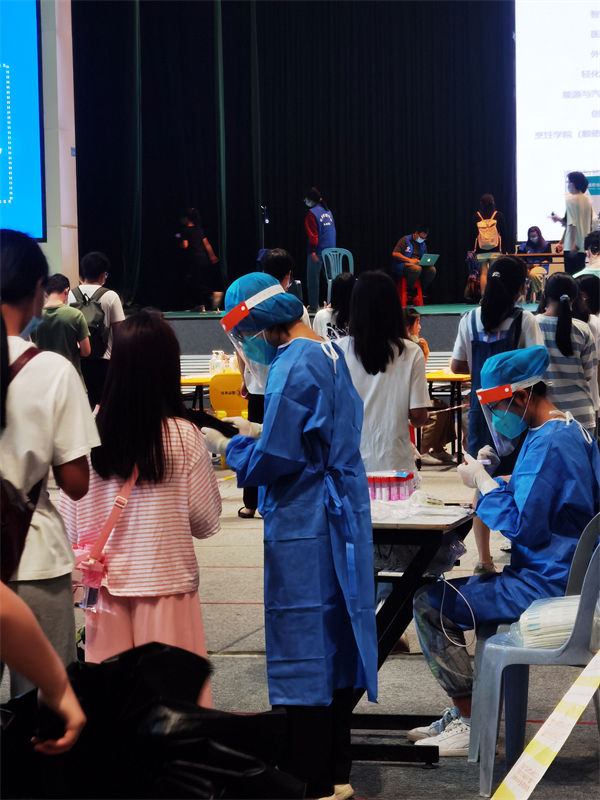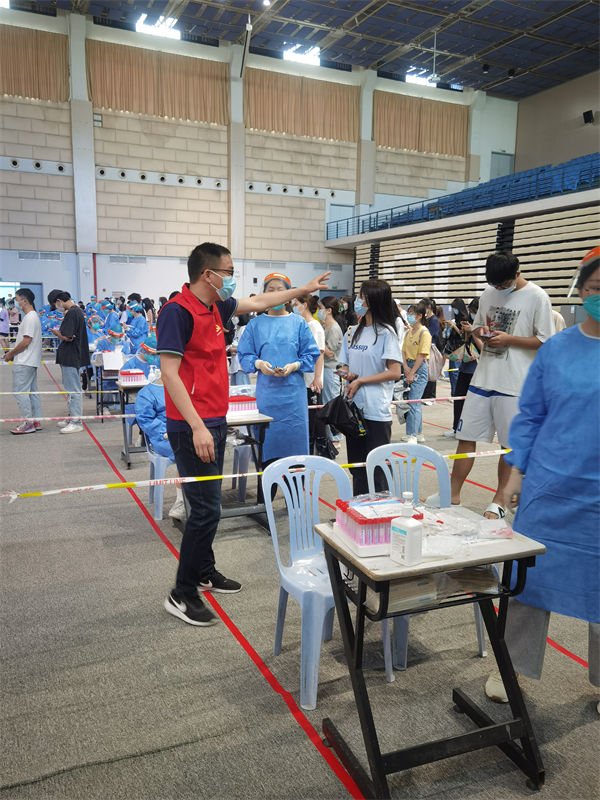 5月5日是五一假期后返校开学的第一天,根据学校疫情防控工作部署,太阳官网在梁銶琚礼堂内开展全校师生核酸检测。能源与汽车工程学院能源教研室党支部、学生党支部的11名教职工党员和64名学生党团骨干组成党群先锋队,参与核酸检测提供志愿服务,为学校疫情防控工作贡献青春力量。