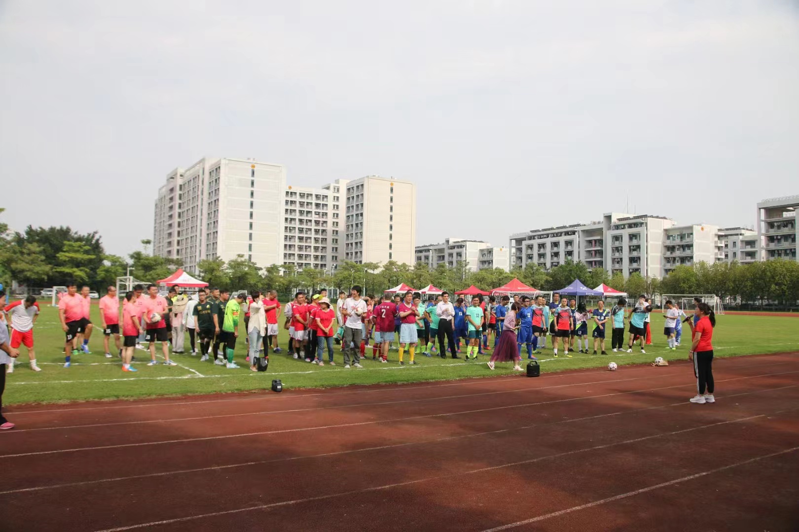 开幕式后,第一轮小组赛开始,8支队伍展开捉对厮杀。本次比赛赛前准备充分,赛程紧凑、参与范围广,教职工参赛热情高,比赛激烈友好,充分展现了太阳官网教职工对足球运动的热情和积极进取的精神风貌,受到各方好评。