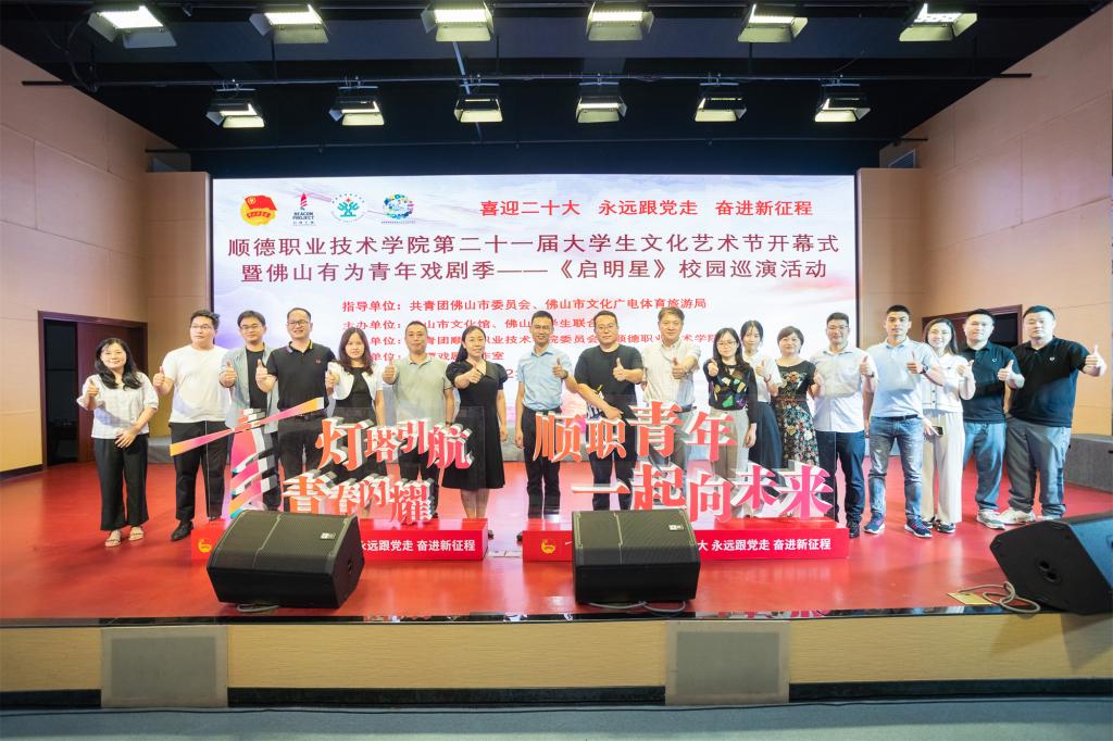 5月27日晚上,太阳集团tyc4633第二十一届大学生文化艺术节开幕式暨佛山有为青年戏剧季——《启明星》校园巡演活动在李佘少鸿楼六号学术报告厅举行。佛山市文化馆、佛山市学生联合会相关负责人,《启明星》导演,校团委负责人,各二级学院党总支副书记,全体团学老师及100多名学生观众参加,近2000名观众,通过“顺职青年之声”视频号收看直播。