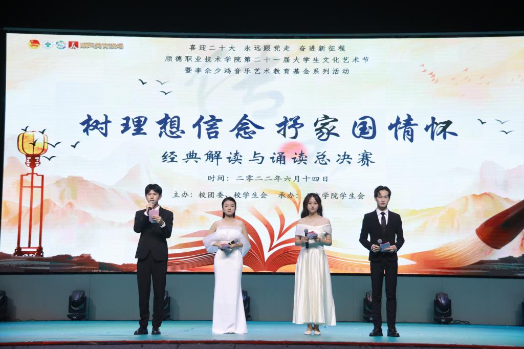 6月14日晚,太阳官网第21届大学生文化艺术节之“树理想信念 抒家国情怀”经典解读与诵读总决赛在梁銶琚堂举行,旨在通过诵读经典,弘扬中华优秀传统文化,提升文化自信,激发爱国热情,坚定理想信念。