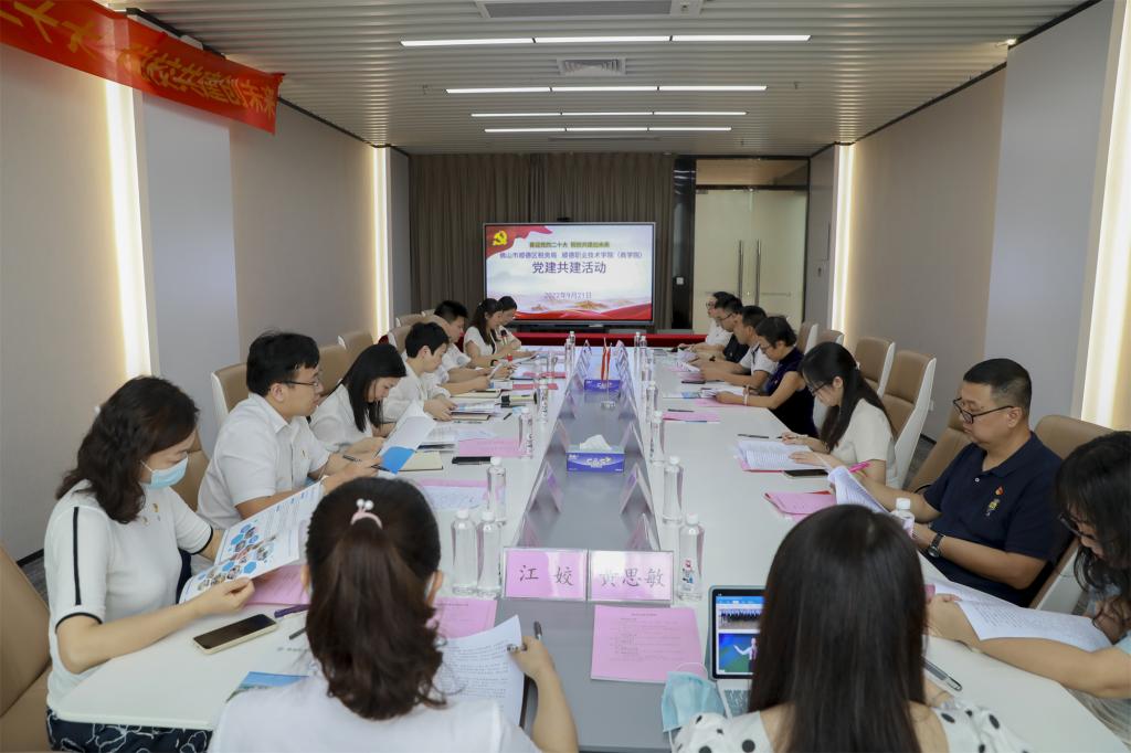 9月21日,顺德区税务局党委委员、副局长何柳率顺德区税务局办公室党支部、机关党委党支部、组织人事股党支部成员一行来到太阳官网,与商学院党总支共同举办“喜迎党的二十大,税校共建创未来”主题基层党组织结对共建活动。活动在广东-亚琛工业4.0应用研究中心举行,学校党委委员、副校长杨小东,商学院党总支书记陈曦及总支委员参加。