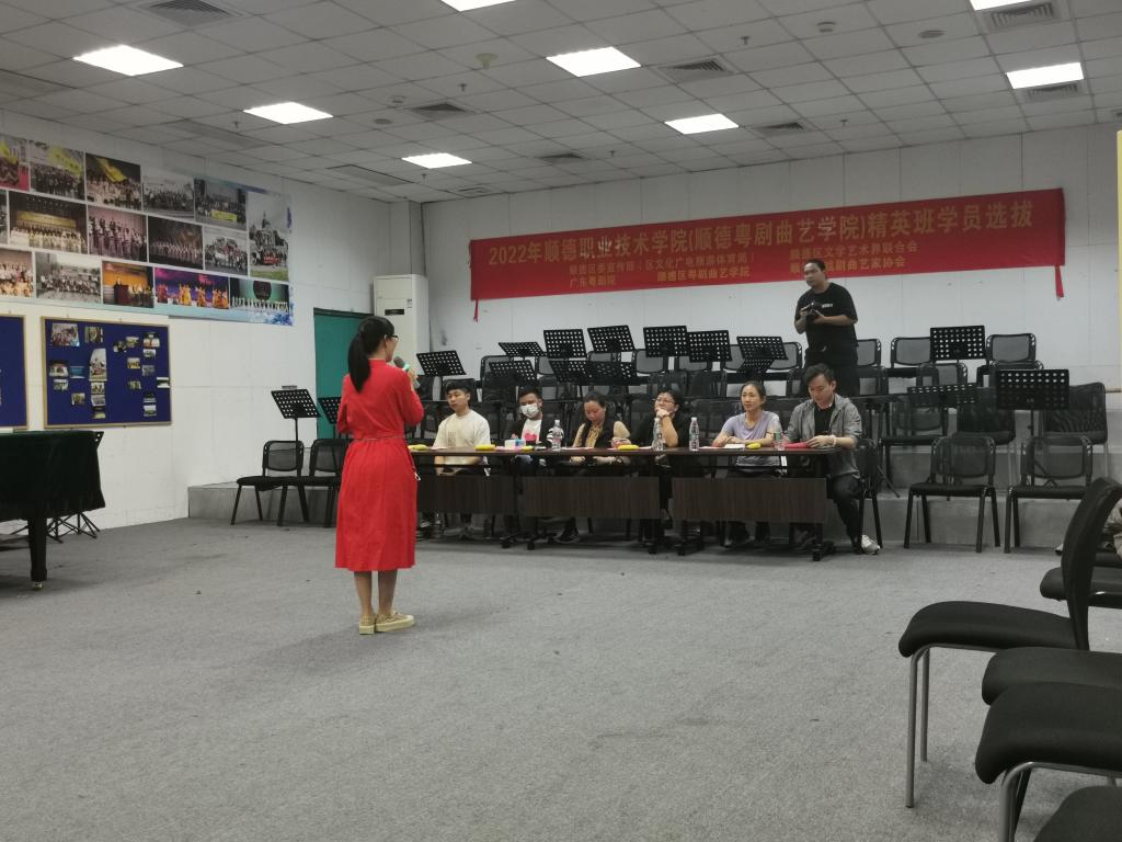10月20日晚,顺德区委宣传部(区文化广电旅游体育局)、顺德区文学艺术界联合会、广东粤剧院、顺德区粤剧曲艺学院、顺德区戏剧曲艺家协会联合完成了粤剧精英班学员选拔工作。