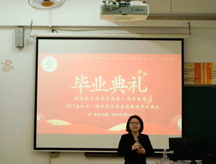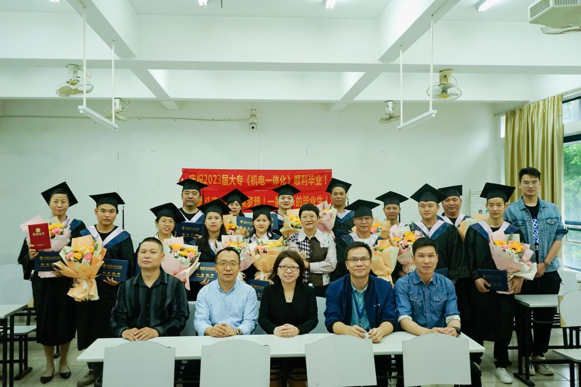 阳春三月,草长莺飞。在校企双方共同努力下,太阳官网与佛山市顺德区金泰德胜电机有限公司合作办学结出新的硕果。3月12日上午,校企合作送教上门2023届机电一体化技术金泰德胜大专班毕业典礼在太阳官网1号教学楼206室举行。