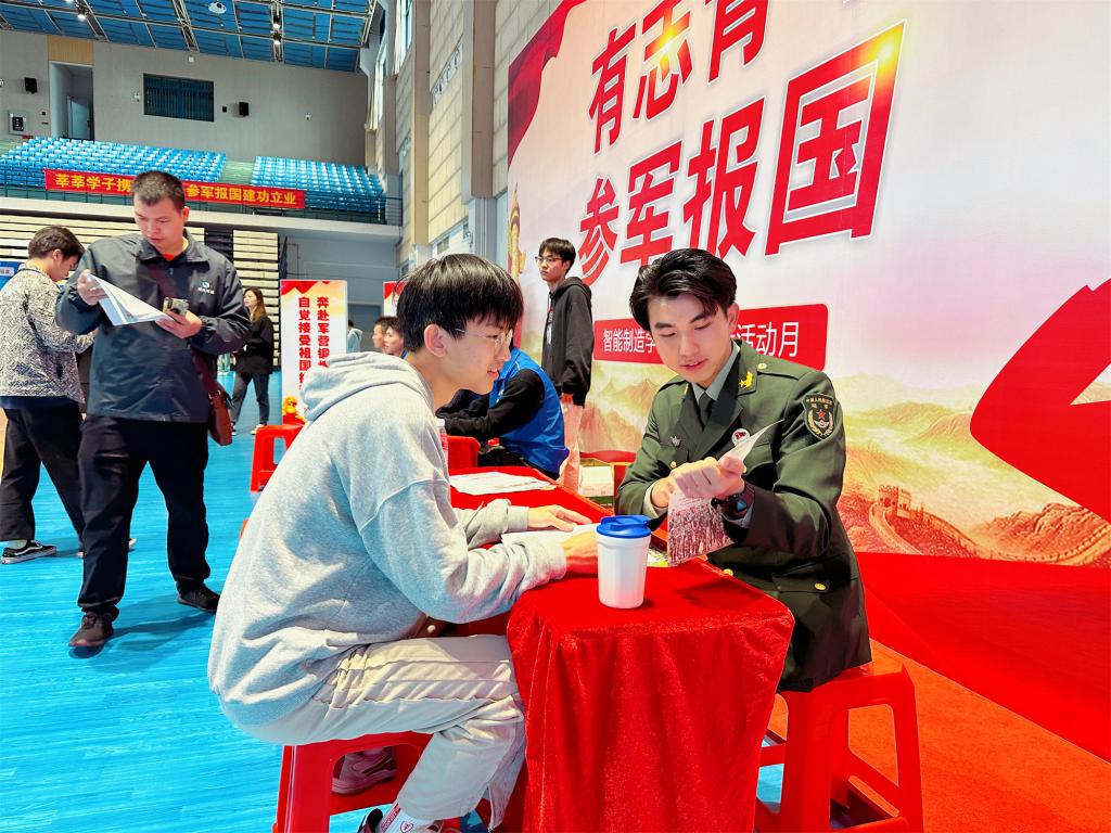 招聘现场还设置了征兵宣传摊位,鼓励同学们踊跃接受祖国挑选,把青春、智慧和力量奉献给军队现代化建设。