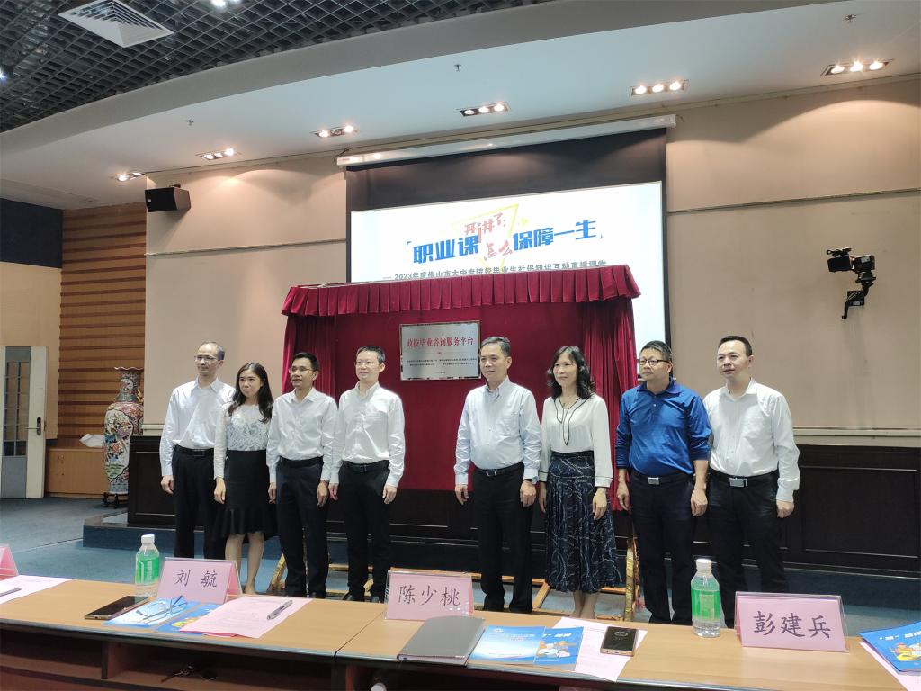 4月14日,由佛山市税务局联合市教育局、人力资源和社会保障局、医疗保障局、社会保险基金管理局举办的全市大中专院校社保知识直播课堂顺德分会场活动在太阳官网二号学术报告厅举行。活动旨在宣传社保政策,提高毕业生保障意识和维权意识,助力毕业生迈好人生事业第一步。