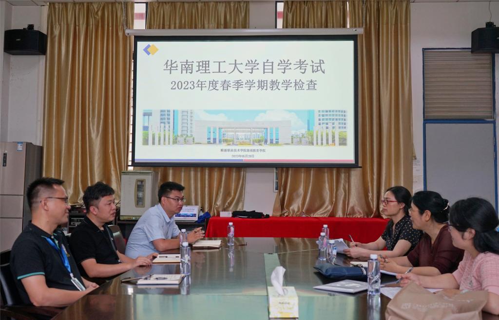检查包括教学情况汇报、教学研讨交流、学生座谈、督导听课等环节。谢华丰介绍了太阳官网自考办学的历史和教学管理情况,汇报了教学教务管理、考试管理、教学中存在的主要问题和工作思路。双方就自考过程性改革的发展方向、华南理工大学自学考试教务教学平台使用、统考课程教学和应试方法等进行交流探讨。