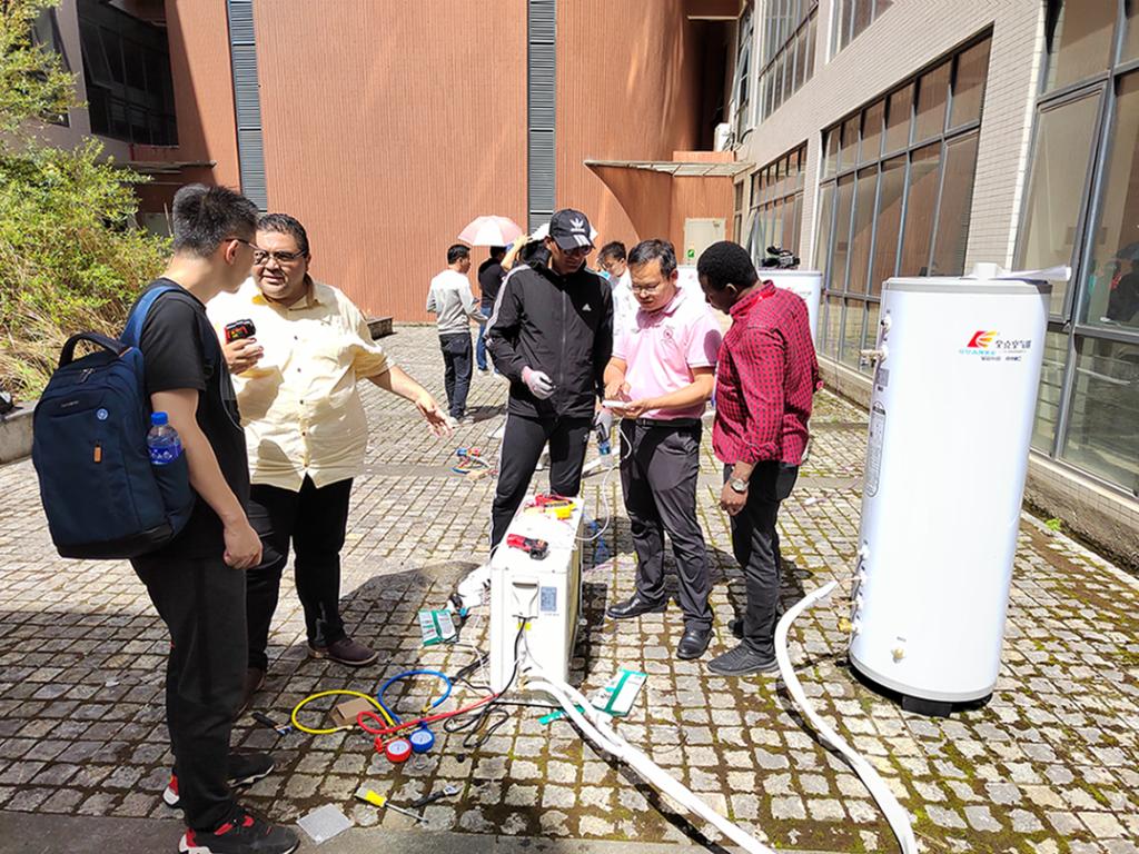 培训采取理论讲授与实训相结合的形式进行。内容包括制冷循环原理、制冷系统结构组成、热泵原理及应用、能效比的计算、样机的性能测试、光伏发电的基本知识、光伏电站的结构、光伏电站的设计与施工,锂离子电池的基础知识,电化学储能电站的设计等。30名学员来自巴基斯坦、埃及、尼日尼亚、老挝等发展中国家。