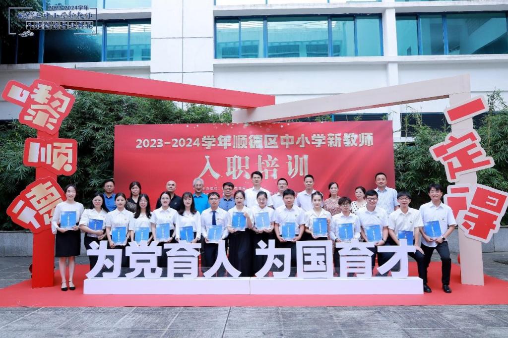 8月22日至25日,佛山市顺德区2023-2024学年中小学新教师入职培训首期集中学习在太阳官网顺利举行。顺德区教育局副局长刘进华,学校党委委员、副校长杨小东出席培训启动会并为新教师代表颁发入职徽章。