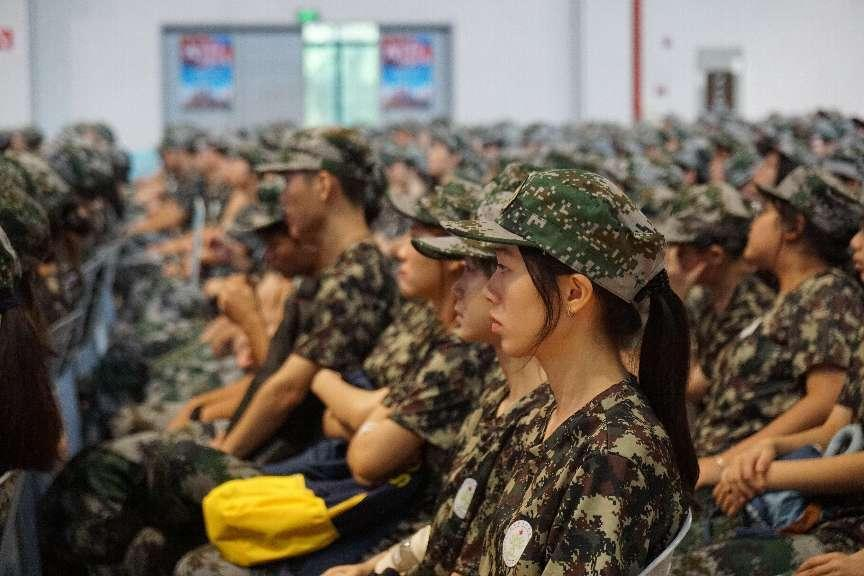 军训开营仪式上,姚美康向教官授军训营旗。设计学院2021级退伍军人陈伟添作为教官代表发言,表示将以良好的军人形象、过硬的军事本领给新生做好榜样。