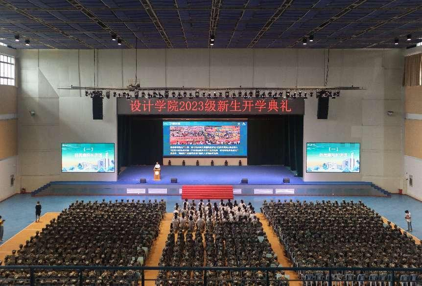 9月15日上午,设计学院2023级新生开学典礼暨军训开营仪式在梁銶琚堂举行。设计学院院长姚美康,党总支书记甘子超,副院长干珑、王荣发,党总支副书记李行等出席典礼。