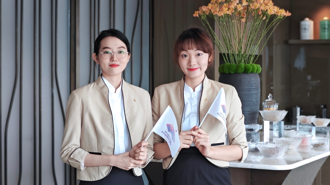 13名学生中,有4名学生在杭州康莱德酒店接待了来自卡塔尔的客人,有9名学生在杭州城中香格里拉酒店接待了来自马来西亚、阿联酋、叙利亚等国的客人。期间,面对不同国籍、不同文化背景的客人,学生们展现出良好的外语沟通能力和跨文化意识,他们对照亚运保障要求,对标一流服务水准,积极融入工作团队,认真完成工作任务,为客人营造温馨舒适、宾至如归的入住体验。