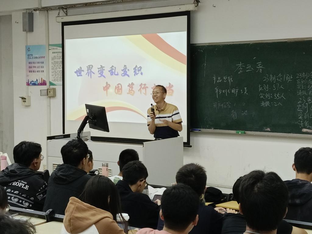 学院党总支书记李玉春以“世界变乱交织,中国笃行担当”为题,围绕变革动荡持续演进、大国关系深刻调整、中国智慧彰显三个篇章,为2023级制冷与空调技术专业的学生讲授“思政第一课”。