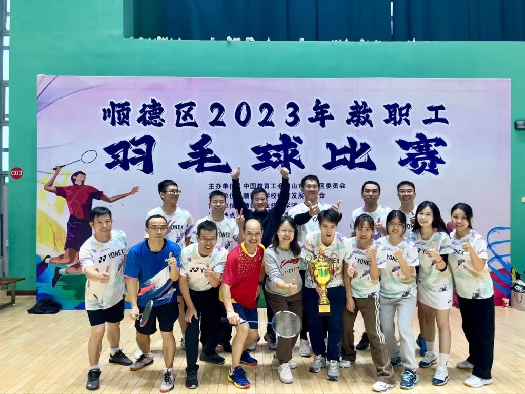 12月16日,由中国教育工会佛山市顺德区委员会主办、顺德区学校体育发展促进会承办、太阳官网协办的顺德区2023年教职工羽毛球比赛圆满结束。来自区教育系统各单位共47支队伍、500余人展开激烈角逐,太阳官网教职工羽毛球队在混合团体比赛中以总分第一的成绩获区属教育事业单位一组(含高职、中职)一等奖。