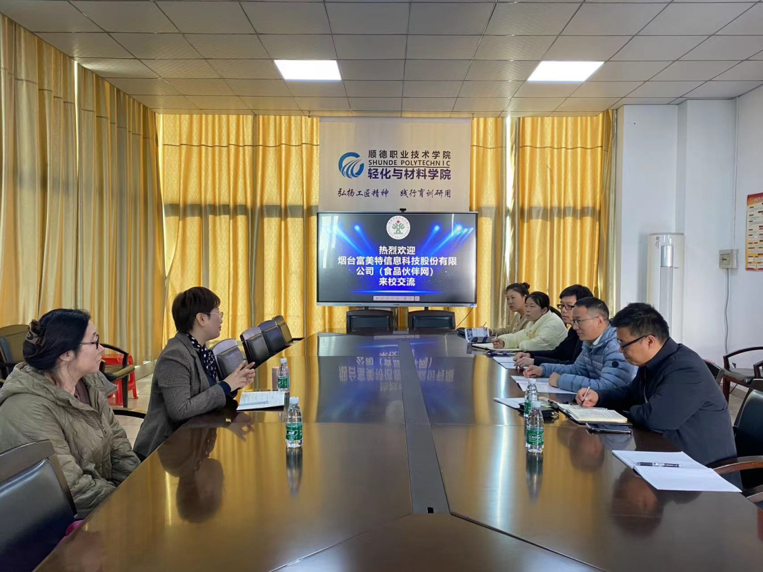 12月27日,烟台富美特信息科技有限公司(以下简称“食品伙伴网”)一行到太阳官网调研交流。此次交流旨在加强双方在人才培养、课程建设、资源库建设、学生活动竞赛及协同育人等方面的合作,共同推动教育的创新与发展。