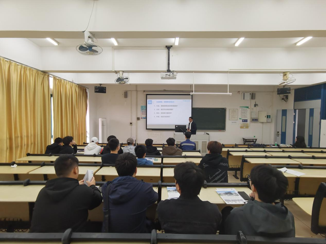 公司副总经理林斌给介绍了广东瀚秋智能装备股份有限公司的历史和公司能给大家提供的培训与职业成长平台,展示了太阳官网优秀校友入职以来的成长档案,为毕业生求职解惑。