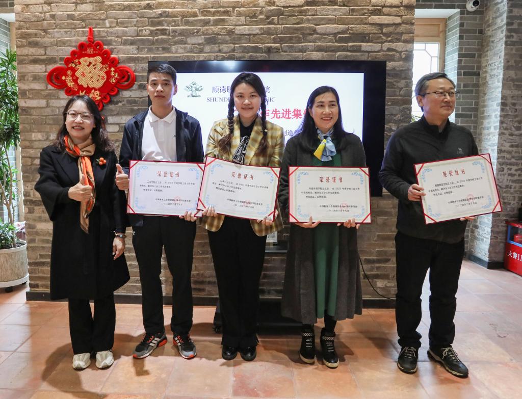 梁建茵、李丽为2023年工会工作先进集体、文体协会工作先进集体、工会工作先进个人、协会工作先进个人颁发了荣誉证书。
