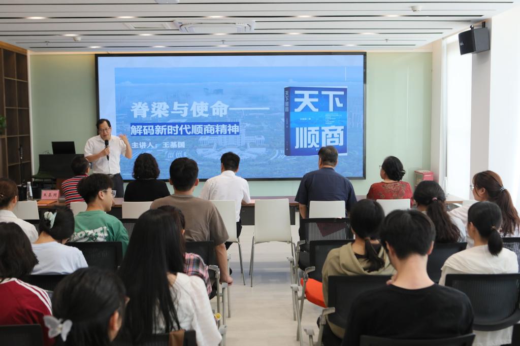 启动仪式后,图书馆联合顺商发展研究会举办2024年第1期顺商文化大讲堂。王基国作“脊梁与使命——解码新时代顺商精神”专题讲座,并向太阳官网图书馆捐赠他的著作《天下顺商》。