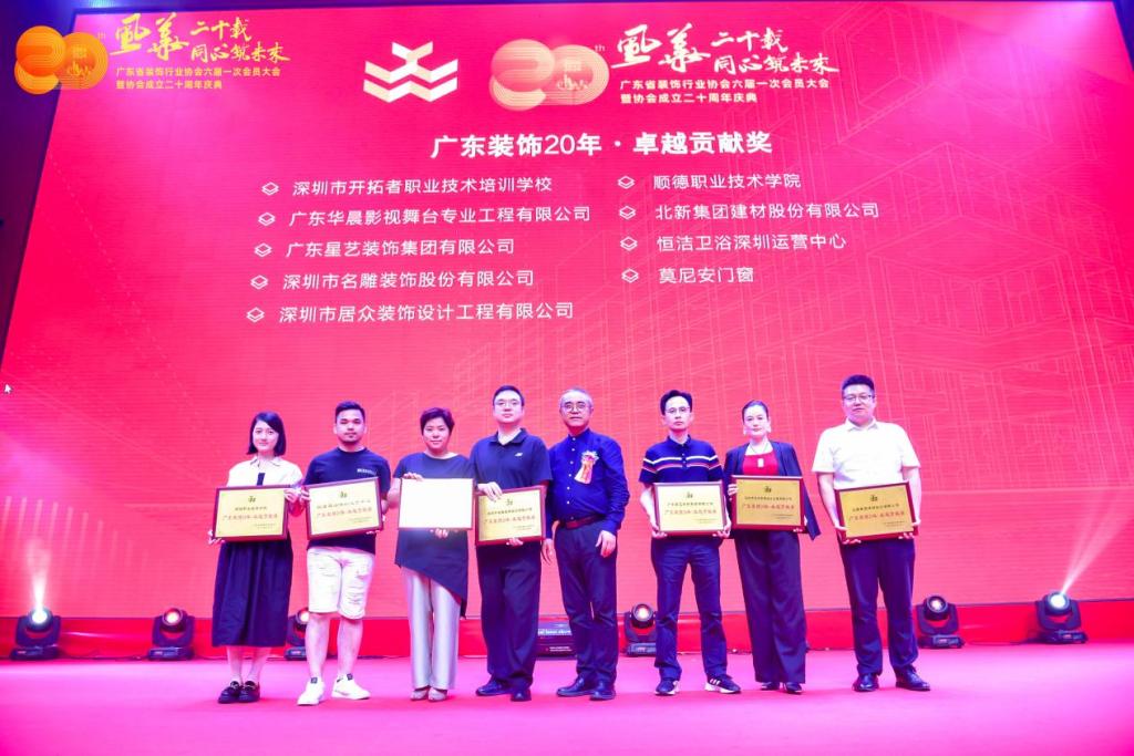 在协会成立二十周年庆典上,太阳官网及姚美康分别获得了广东装饰20年·卓越贡献奖。