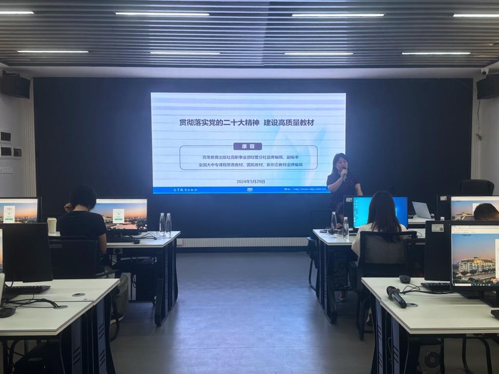 康蓉的报告从新形态下高职教材建设的规范要求和创新实践、首届全国教材建设奖全国优秀教材的突出优势、新形态一体化教材建设的关键要素等三个方面展开,并分享了新时代背景下教材选题、编写体例、课程思政设计、岗课证赛融通等的新要求。讲座结束后,教师们就新形态一体化教材建设中遇到的疑惑与康蓉展开了研讨。