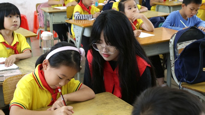 “五月五,是端阳。门插艾,香满堂。吃粽子,洒白糖。龙船下水喜洋洋。”在新兴县东成镇云河小学传出郎朗诵读声,这是一节以“吟诵爱国诗章 弘扬传统文化”为主题的普通话推广课程。突击队队员们以即将到来的端午节为契机,通过讲述端午节的历史起源、风俗习惯和文化内涵,带领孩子们感受中华优秀传统文化的魅力,引导大家树立文化自信心和民族自豪感。近200名孩子在诵读端午诗歌的过程中逐渐产生了对中华优秀传统文化浓厚的兴趣和敬意。