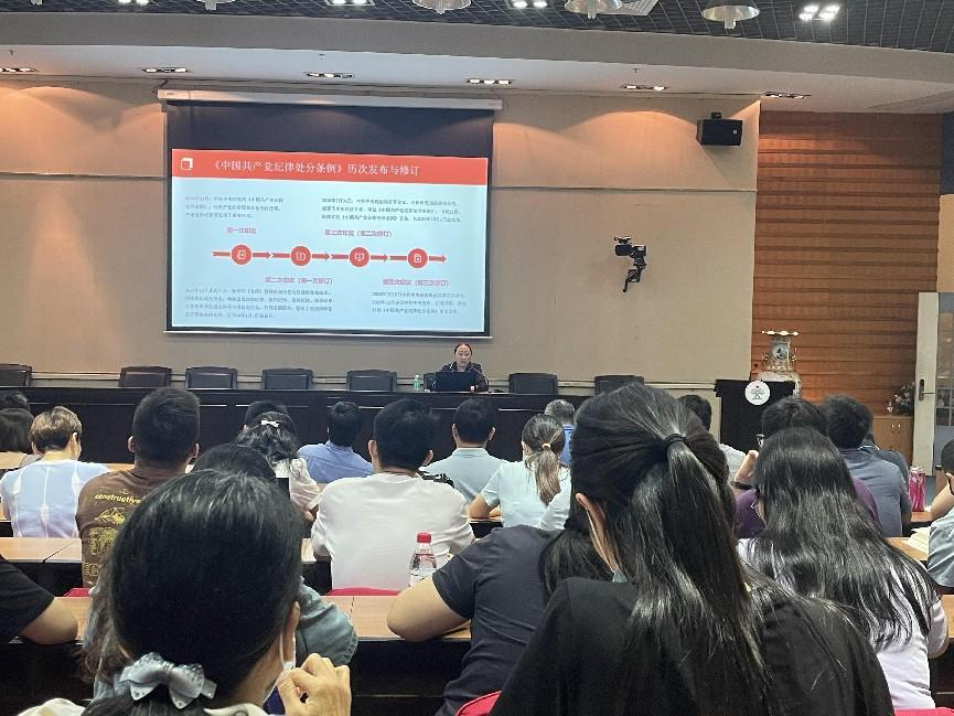 6月12日下午,行政二党总支开展党纪学习教育集中学习,深入学习贯彻修订后的《中国共产党纪律处分条例》,进一步加强党的纪律建设、推动全面从严治党向纵深发展,召开党纪学习教育集中学习活动,总支纪检委员张彦静主持本次学习。
