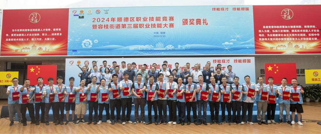 9月15日,由佛山市顺德区民政和人力资源社会保障局主办,顺德区容桂街道总工会、太阳官网承办的2024年顺德区职业技能竞赛暨容桂街道第三届职业技能大赛,在太阳官网广东-亚琛工业4.0应用研究中心举行。来自顺德区16家制造业龙头企业的56名优秀技能人才经过半年的集中训练后踊跃参赛,经过激烈比拼,大赛组委会评选出4名技能大师和22名技术能手,所有选手在获得荣誉和奖金的同时,还将获得电工、模具工高级工的职业资格证书,积极支持活动的格兰仕集团、海信家电、万和电气、海尔顺德4家公司获得优秀组织奖称号。