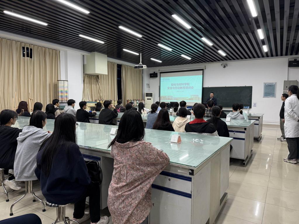 11月20日,轻化与材料学院组织开展实验室安全与劳动教育培训,旨在提升化学实验实训室安全管理水平,确保师生安全。轻化与材料学院副院长刘锋、教师代表以及在校大一、大二所有班级的班干部代表共50余人参加活动。