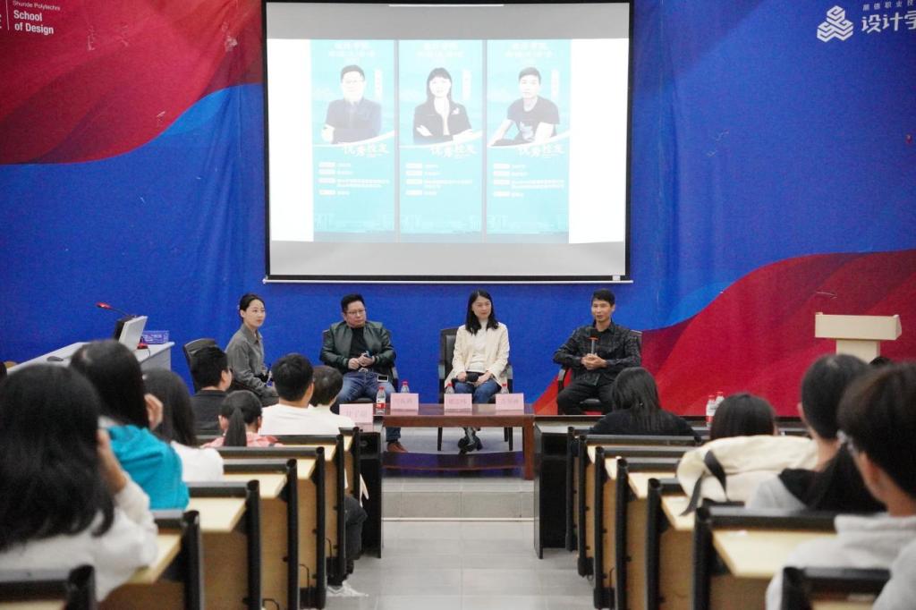 11月20日下午,设计学院第七期明德大讲堂开讲。本期活动聚焦“校友领航、共话成长”,邀请了1998级家具设计专业周振辉(现任佛山市领秀家居用品有限公司、佛山市领欣家具有限公司董事长)、2000级工业设计专业谢志纯(现任佛山市顺德区古今工业设计有限公司总经理)、2004级环艺展示专业苏贤铸(现任佛山市维斯拉斯家居有限公司、佛山市时代那美科技有限公司董事长)三位优秀校友作为主讲嘉宾以圆桌对话的形式,与在校师生一起共忆当年在校的学习生活,分享毕业后的发展历程,向师弟师妹们传授宝贵的成长经验。