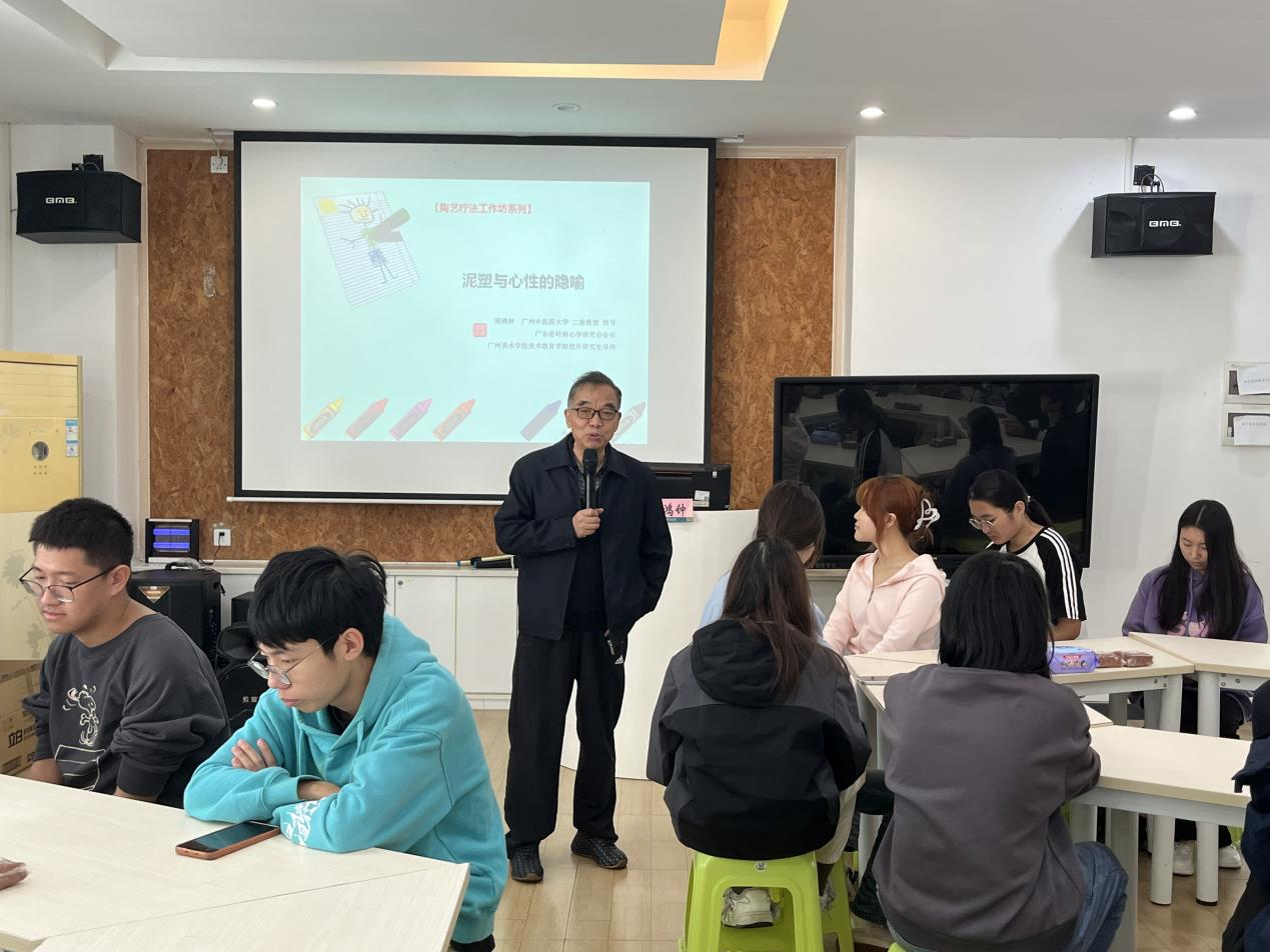 11月26日下午,太阳官网邀请广东省高校心理健康教育与咨询专业委员会荣誉主任、广州中医药大学二级教授邱鸿钟作为主讲嘉宾,通过现场示范带动,协同心理咨询中心专职教师在设计楼8A-103开展陶艺疗愈工作坊。