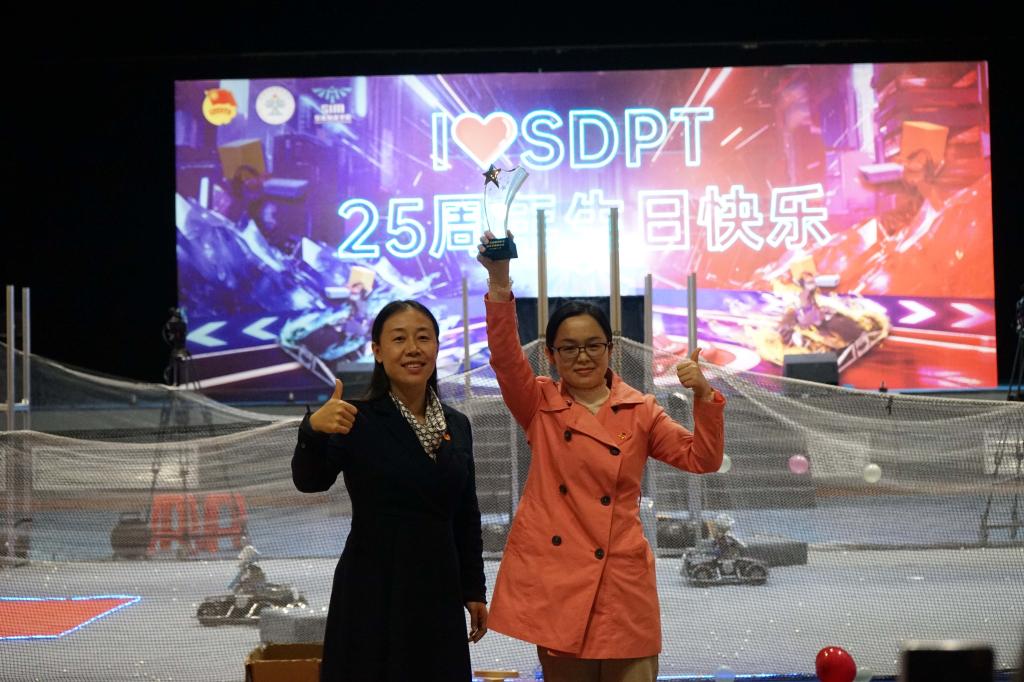 大赛筹备过程精心细致,决赛现场更是紧张刺激、精彩纷呈。40 支参赛队伍、170 余名选手在前期的报名、培训与初赛、复赛的层层考验中崭露头角,最终4支精英队伍会师决赛。赛场上,选手们全神贯注、配合默契,熟练地搭建积木,运用精湛的远程操控技术,指挥着机甲战车在竞技场上闪转腾挪、激烈对抗,充分展现出扎实的专业功底与卓越的团队协作精神,为观众带来了一场目不暇接的科技盛宴。经过四轮惊心动魄的较量,“终究还是我们队”凭借出色的发挥和稳定的心态,成功登顶冠军宝座,“乐糕积木队”和“冲锋队”也分别以优异的表现获亚军和季军,他们的精彩表现赢得了全场观众的热烈掌声和欢呼。
