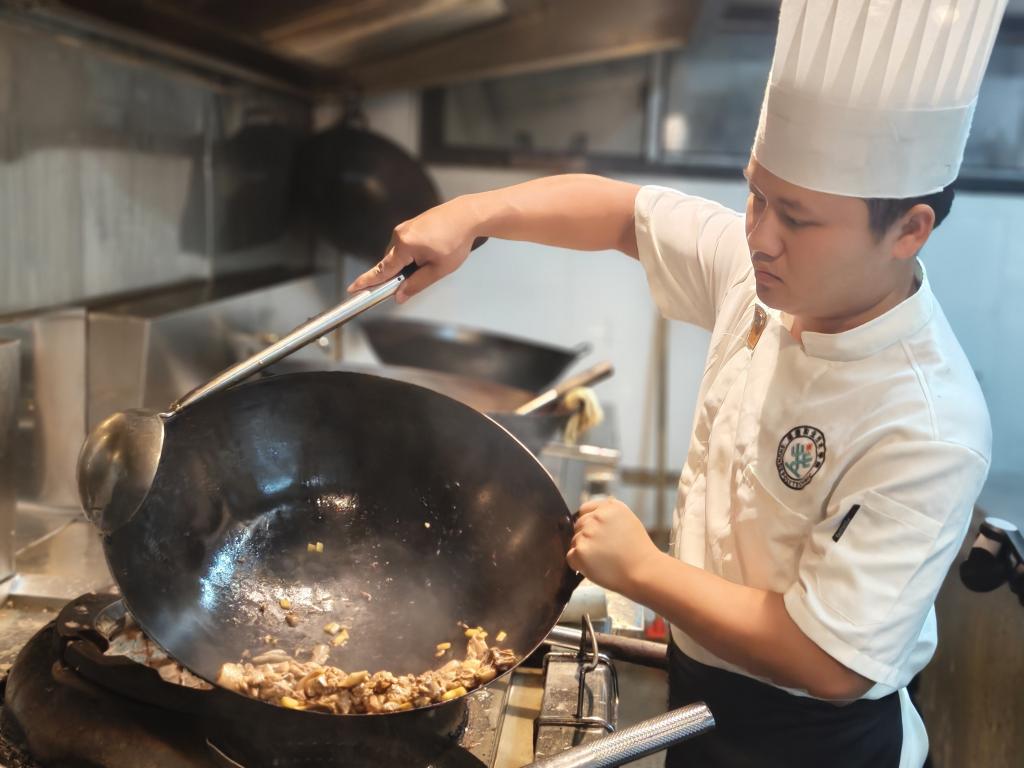 要让菜品讲好革命故事,必先读懂历史里的温度。团队师生抵达井冈山后,开启“沉浸式研学”。通过深入学习《井冈山斗争与井冈山精神》《三湾改编》等课程,读懂“红米饭南瓜汤”蕴含的革命内涵;重走三公里挑粮小道,体悟“坚定信念,艰苦奋斗”精神;走进老乡家,围柴火灶听“吃着沙子混红米,却靠这口饭打胜仗”的往事——这些听来的、摸过的、尝过的,都成了后续菜品复现创新的“灵魂素材”。