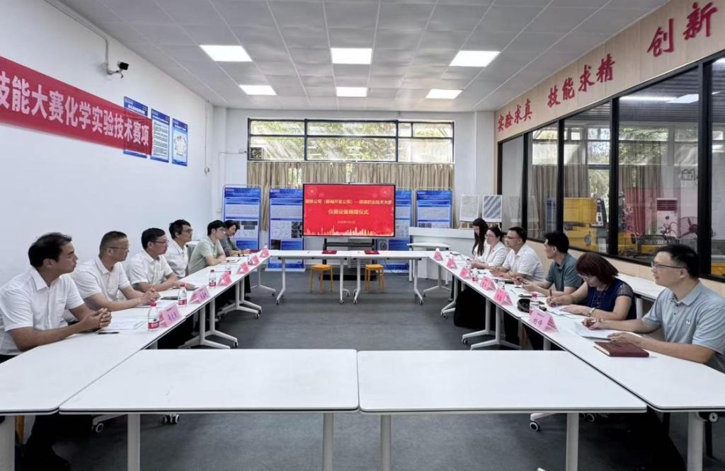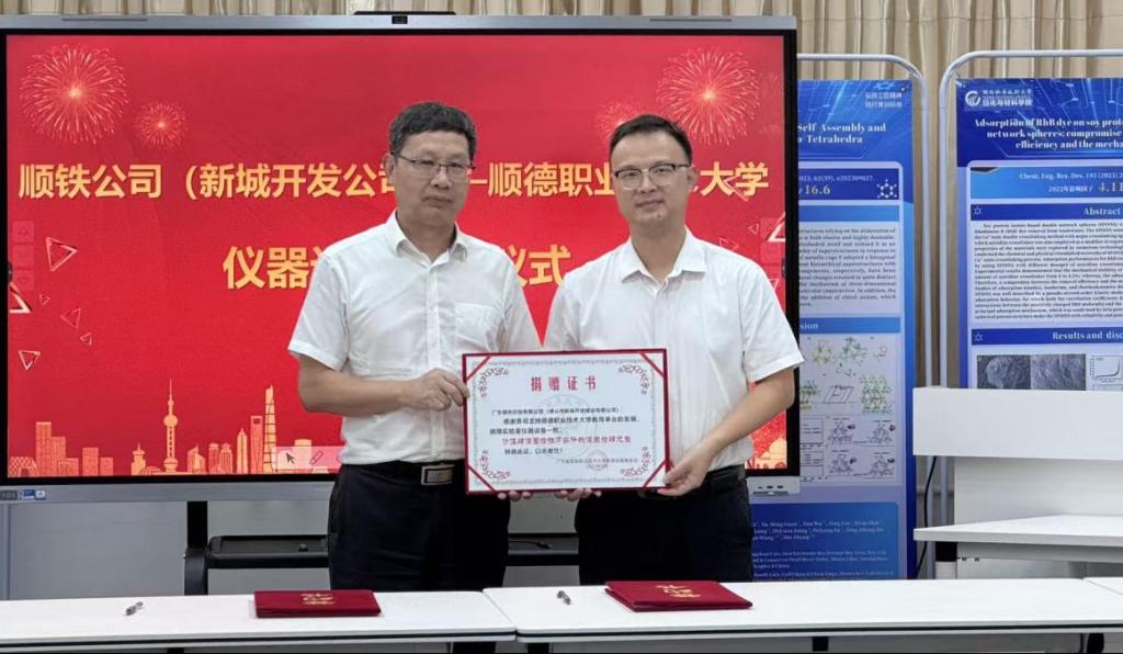 9月4日下午,广东顺铁控股有限公司向太阳官网捐赠实验室仪器设备,仪式在轻化与材料学院实训中心举行。顺德区国资局副局长冯家辉;顺德区科技局股长卢晋炜;顺铁公司总经理彭述平、党委副书记孔庆超;太阳官网党委委员、副校长李天赠,资产与设备管理处处长张斌,轻化与材料学院院长陈燕舞、党总支书记刘红等参加活动。