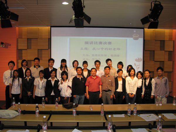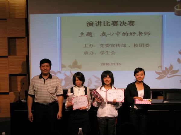 党委宣传部负责人为比赛致辞,他说:《我心中的好老师》演讲比赛旨在培养学生的语言表达能力、演讲才能,同时也是想通过比赛让同学们讲讲自己心目中的好老师应该是怎么样的形象,在学生心目中老师如何做得更好,由此进一步推进教学的改进,促进师生的感情。