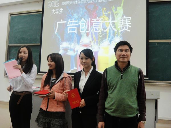 12月13日下午,由学生处、校团委主办,人文教育系与设计学院主持人协会共同承办的第九届大学生科技节之首届“大学生广告创意大赛”颁奖典礼在教学楼1栋300圆满落幕。学生处、校团委、人文教育系等相关负责人、参赛选手以及学生代表共200多人参加了典礼。