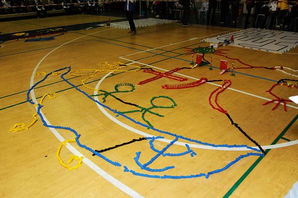 在总决赛前,学生处、电信系相关负责人,指导老师及全体辅导员都到现场进行指导,给了大赛莫大的支持和鼓励。在总决赛现场,气氛活跃,掌声不断,观众都为参赛队员的技能和创意欢呼呐喊。智能小车考验了学生单片机技术和编程能力,多米诺骨牌则考验了学生的创意和团队精神。各参赛队的骨牌展示作品融合着十八大精神、中国保钓决心、人生中不同的选择等创意,充分发挥了学生技能展演、语言表达、团队展示等方面综合能力。