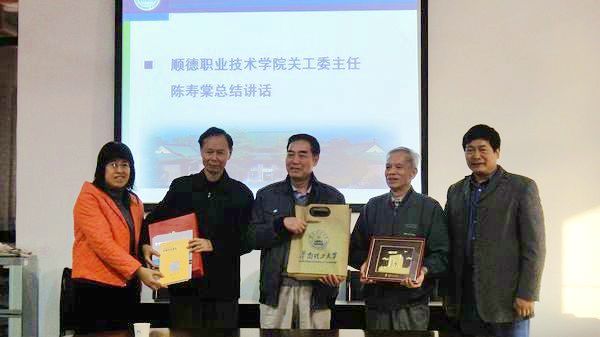 学习交流会由华工关工委副秘书长、离退休工作处副处长杨红主持。学习组的同志观看了“共托朝阳20年—纪念华工关工委成立20周年的专题片”。华工关工委常务副主任、原党委书记曾惠典等领导、专家向顺德职院学习组介绍了他们的经验。曾惠典副主任介绍了华工关工委从成立到现在的三个发展阶段的情况,强调了党委重视、关工委成员根据自身情况主动有所为,结合工作需要创造条件、量力而为,在创新发展的过程中形成自己的特色。华工关工委副主任、原华工党委组织部部长潘碧章同志介绍了“关工委参与大学生党建工作”情况,华工关工委副主任、名师报告团团长、原华工宣传部部长伍德昌介绍名师报告团的创建、工作特点和成效。太阳官网关工委负责人简要介绍了顺德职院关工委的基本情况。他们说,顺德职院关工委虽然起步较晚,人员较少,基础较弱,但这些年来一直在认真学习、落实中央和教育部的相关文件精神,积极向兄弟院校、先进单位学习,努力赶队创优,也取得了一些成绩。我们在听取了华工的经验以后,将依据我们的实际,把华工关工委的好理论、好经验、好作风带回去,指导和推动太阳官网关工委今后的工作。太阳官网关工委负责人希望,借着两地多年的友好关系和新的发展平台,今后进一步加强学习交流。同时,欢迎华南理工大学关工委同仁到太阳集团tyc4633传经送宝,促进顺职关工委服务的质量与水平的提高,华南理工大学关工委的同志也愉快地接受了邀请。