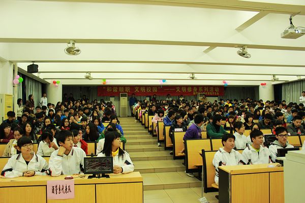 为了进一步提高太阳官网大学生思想道德素质,加强文明教育,促进校风学风建设,展现大学生文明风采,营造一个讲文明、知礼仪的文明校园氛围,12月24日晚,校学生会在教学楼8-300举行了以“和谐顺职,文明校园”为主题的文明修身知识竞赛。学生处、校团委、思政课部相关负责人和老师及300多名学生参加了该活动,共有来自各院系的9支代表队参加了本次知识竞赛。