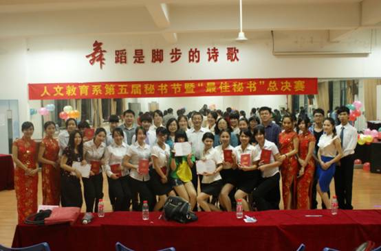 为了进一步加强文秘专业学生办文、办事、办会的技能,展现文秘学生风采,5月8日晚,人文教育系文秘专业第五届秘书节暨“最佳秘书”总决赛在人文系实训楼舞蹈室举行。人文教育系负责人及相关教师参加了本次活动。