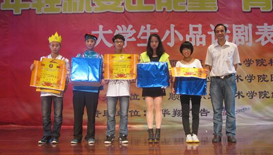 本次大学生小品话剧表演大赛以“年轻就要正能量,青春炫出我风采”为主题,共吸引了来自全校七个院系的近18支队伍200多名同学参赛。经过激烈的初赛、复赛后,6支队伍脱颖而出,进入当晚的决赛。参赛队伍各显身手,在话剧小品中融入了青春、亲情、友情、爱心等元素,结合幽默的语言、趣味生动的角色表演,把当代大学生的精神面貌和青春魅力充分展现在观众面前,抒写了当代大学生面对高远梦想的踌躇与奋进,演绎了当代大学生面对亲情的感恩与反思,描绘了当代大学生面对青春的迷茫与思考,阐释了当代大学生心灵深处的真、善、美。整个现场笑声连连,掌声阵阵,喝彩声此起彼伏,师生们都沉浸在话剧小品带来的欢乐和心灵触动中。