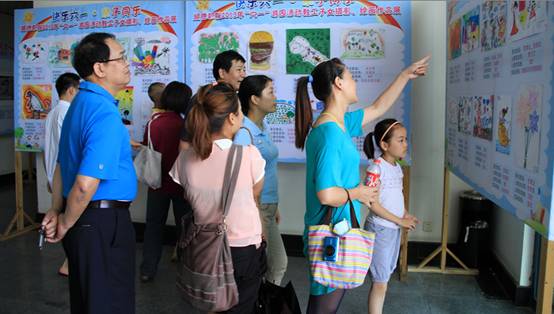 今年的六一活动的另一个亮点是照片墙和小朋友参加展出的美术、摄影作品。工会精选了一部分近两年六一活动的照片,制作成“温馨校园·伴我成长”照片墙,让孩子们在寻找自己的足迹和笑容中感受成长的快乐。今年的绘画和摄影作品量达到100多幅,是前几年的总和。有的妈妈“爆料”——孩子为了拍摄小鸟的照片,在公园整整观察了一天。何锐连副书记专程来到游园会现场,他仔细地观赏了小朋友制作沙画的过程,与多位家长亲切交谈,并对小朋友的绘画、摄影作品展赞不绝口,他对台前幕后辛勤服务的工作人员表示感谢。